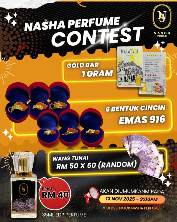 1️⃣ Beli perfume Nasha Perfume – Lovely Scented sepanjang tempoh promosi.